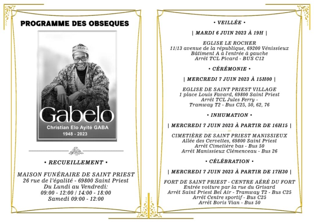 [NECROLOGIE] Les Togolais de Lyon en deuil, l’artiste GABELO nous a quittés mardi 30 mai 2023