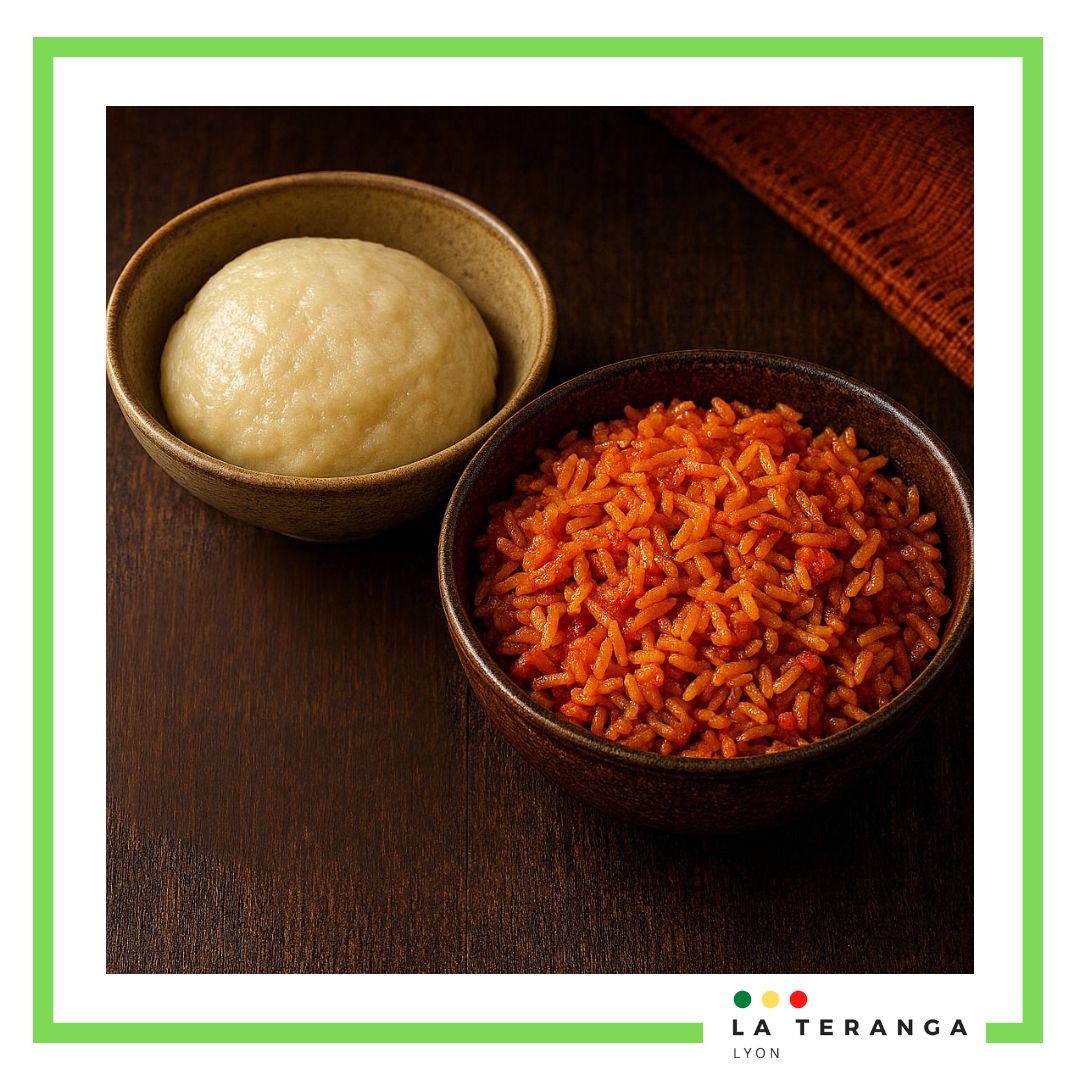 Riz jollof : Riz épicé aux tomates, une spécialité d’Afrique de l’Ouest, parfait en plat convivial.